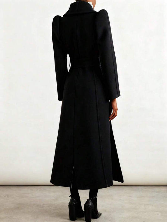 Stylish Double Breasted Asymmetrical Button Long Puff Sleeves Long Overcoat - Free Shipping