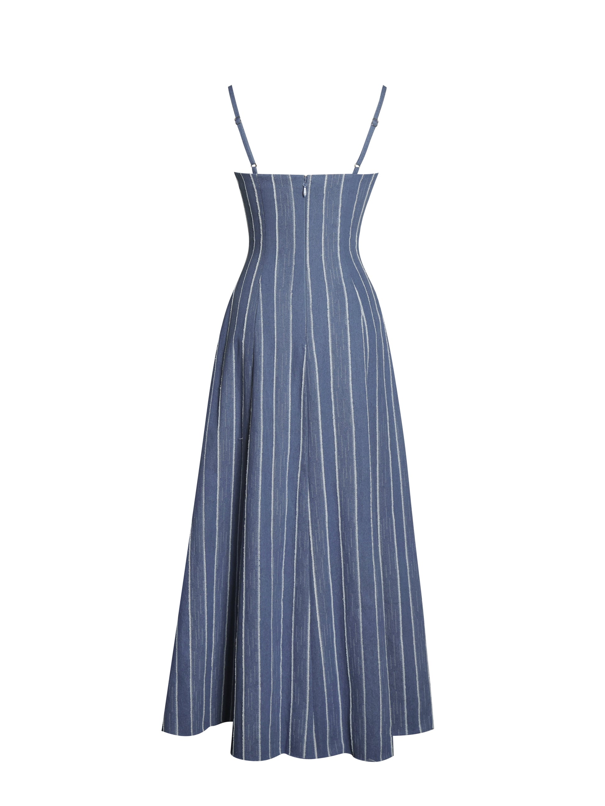 Miss Circle Abygail Stripe Cotton Denim Maxi Dress - Free Shipping