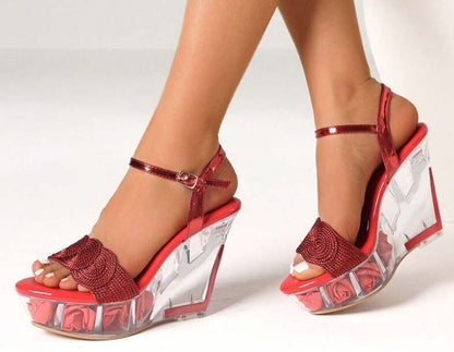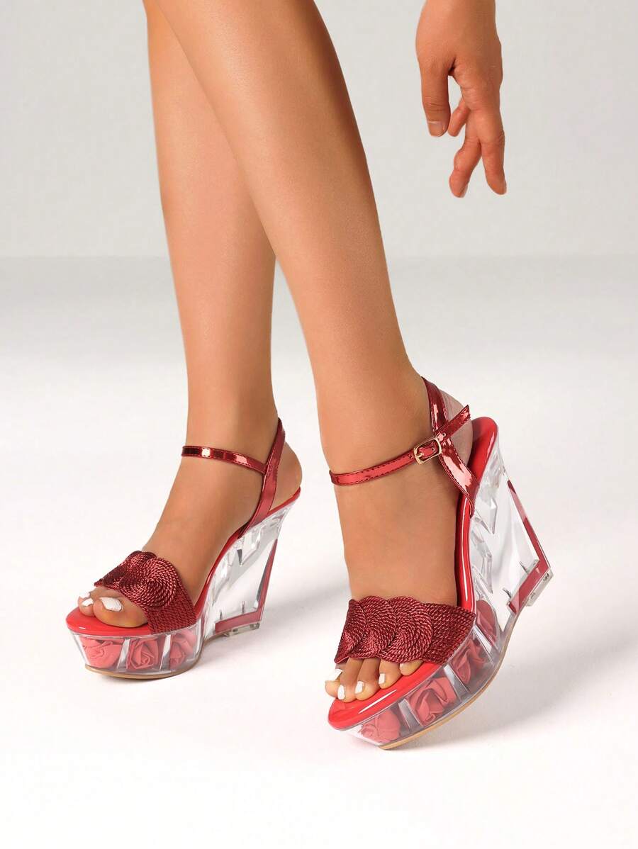 Turn heads with these Stylish Braided Strap Open Toe Clear Wedge Platform Sandals, designed to elevate your style with bold elegance. Featuring a shimmering red finish, secure buckle closure, and a striking clear wedge platform, these heels offer both glamour and comfort. The intricate braided detailing adds a touch of sophistication, perfect for nights out or special occasions. Enjoy free shipping on your every order.