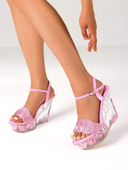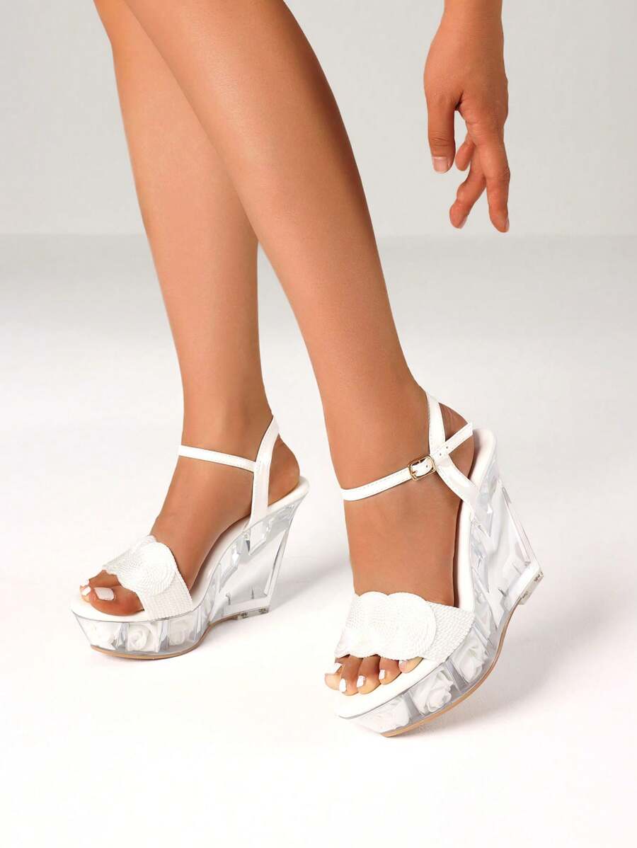 Stylish Braided Strap Open Toe Clear Wedge Platform Sandals – Free Shipping