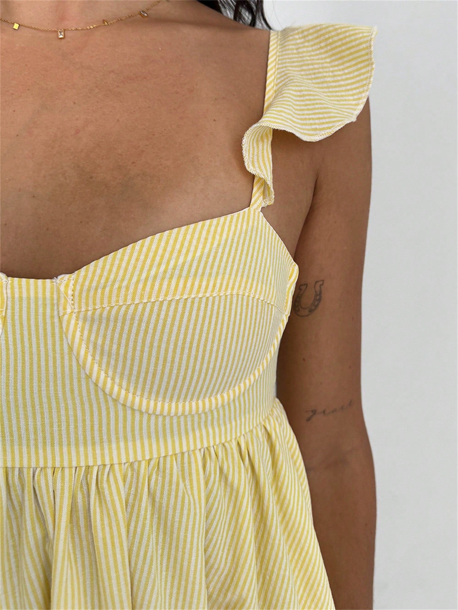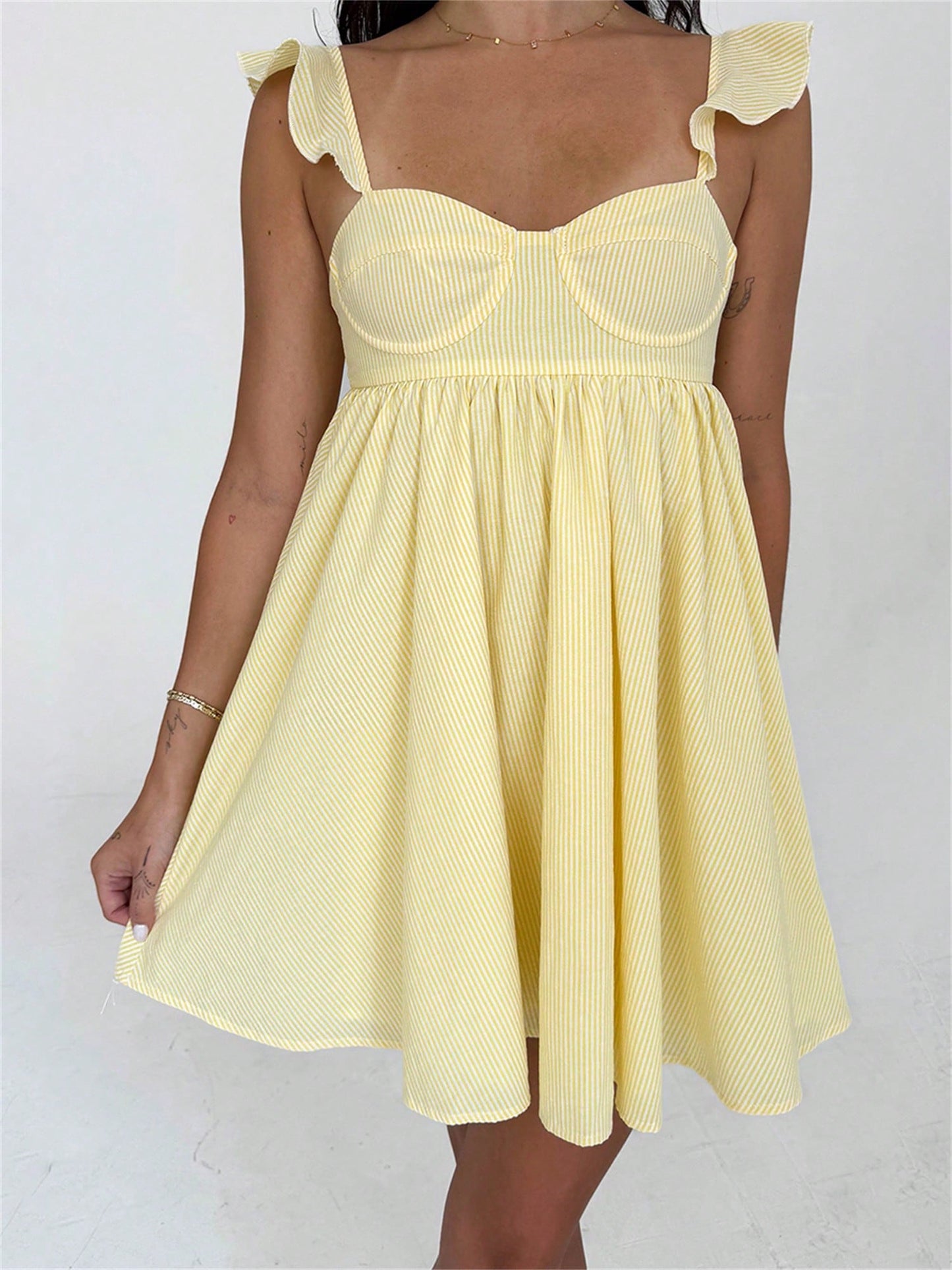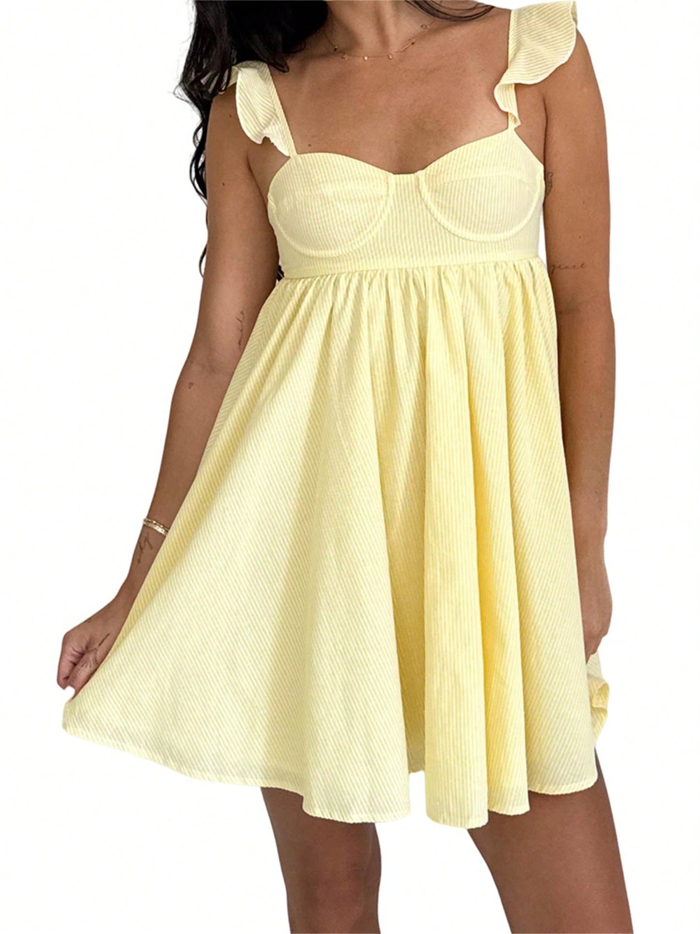 Embrace effortless sophistication with our Stylish Ruffled Strap Open Back Flowy Mini Short Dress, featuring a graceful A-line silhouette and a breezy, flowy design. The delicate ruffled straps and alluring open back add a touch of charm, making it perfect for any occasion. Enjoy free shipping on your every order.