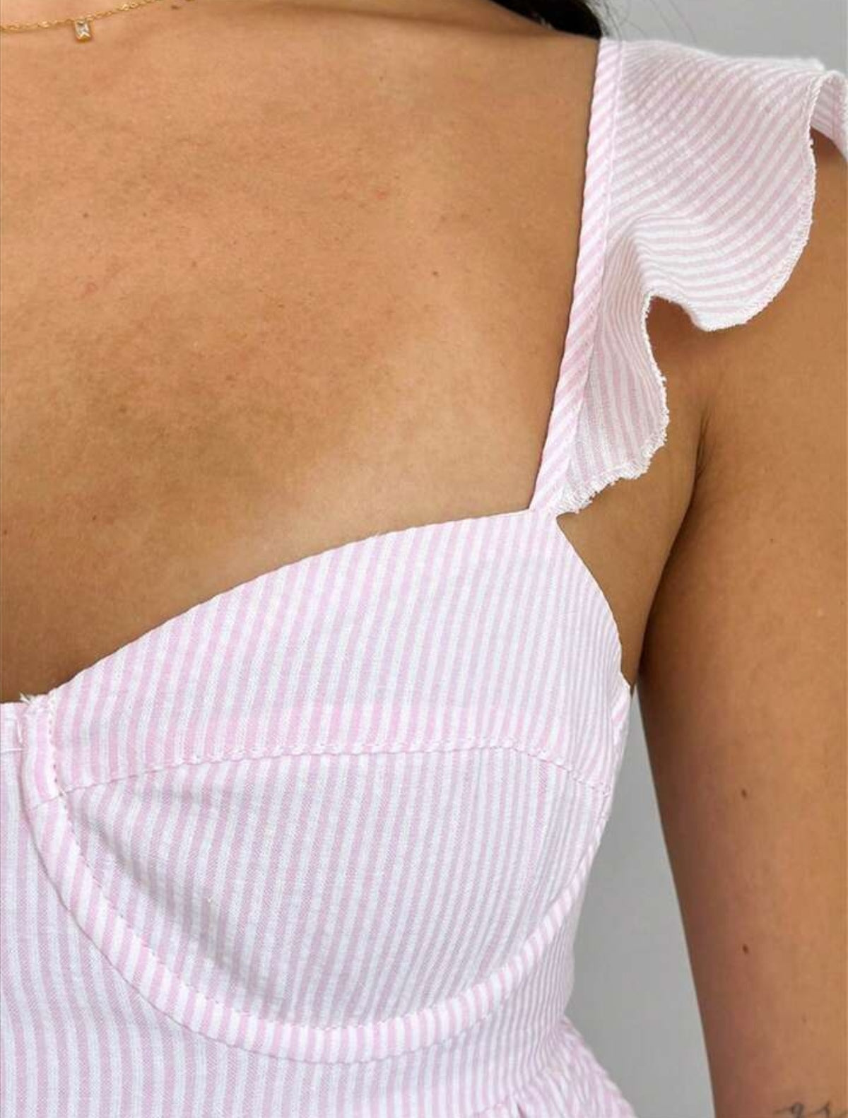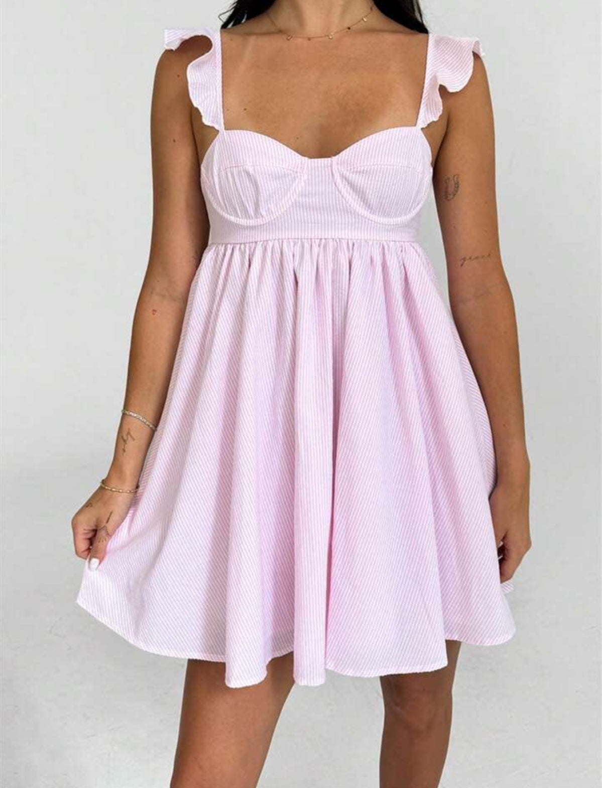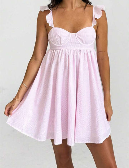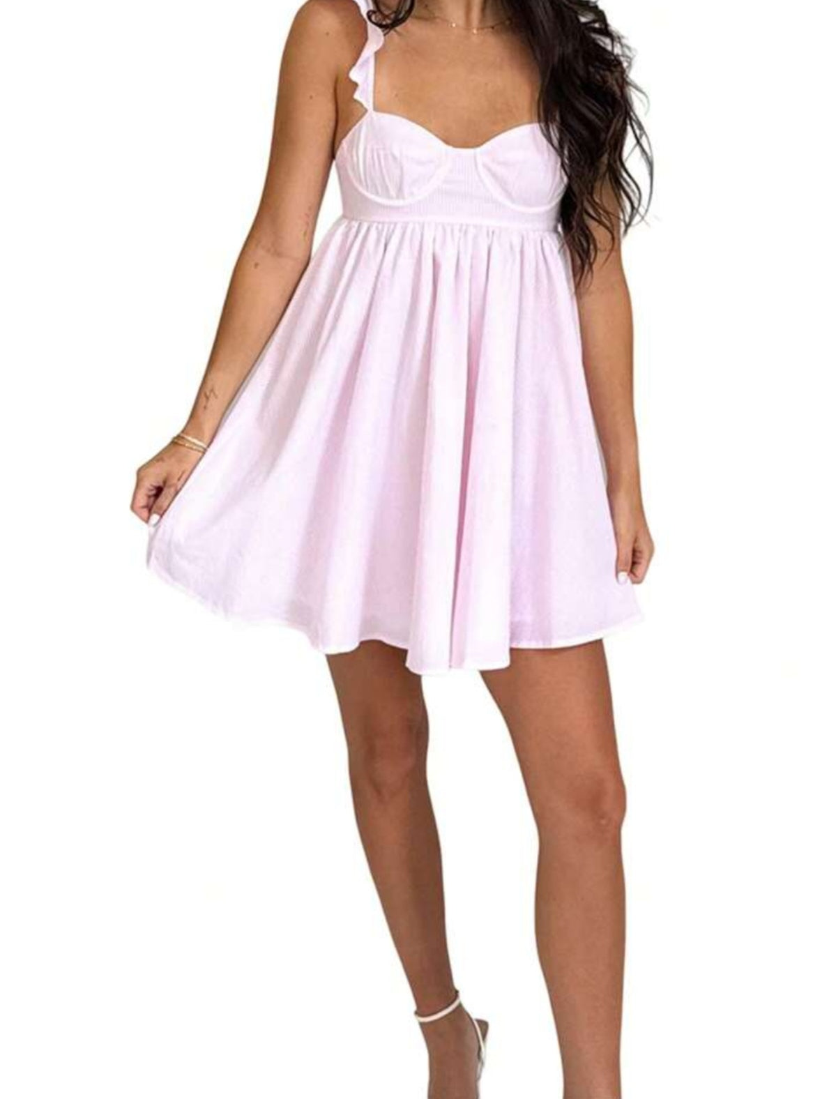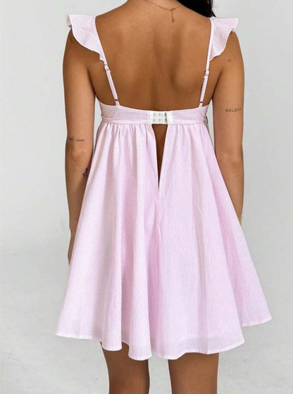 Stylish Pink Ruffled Strap Open Back Flowy Mini Short Dress – Free Shipping