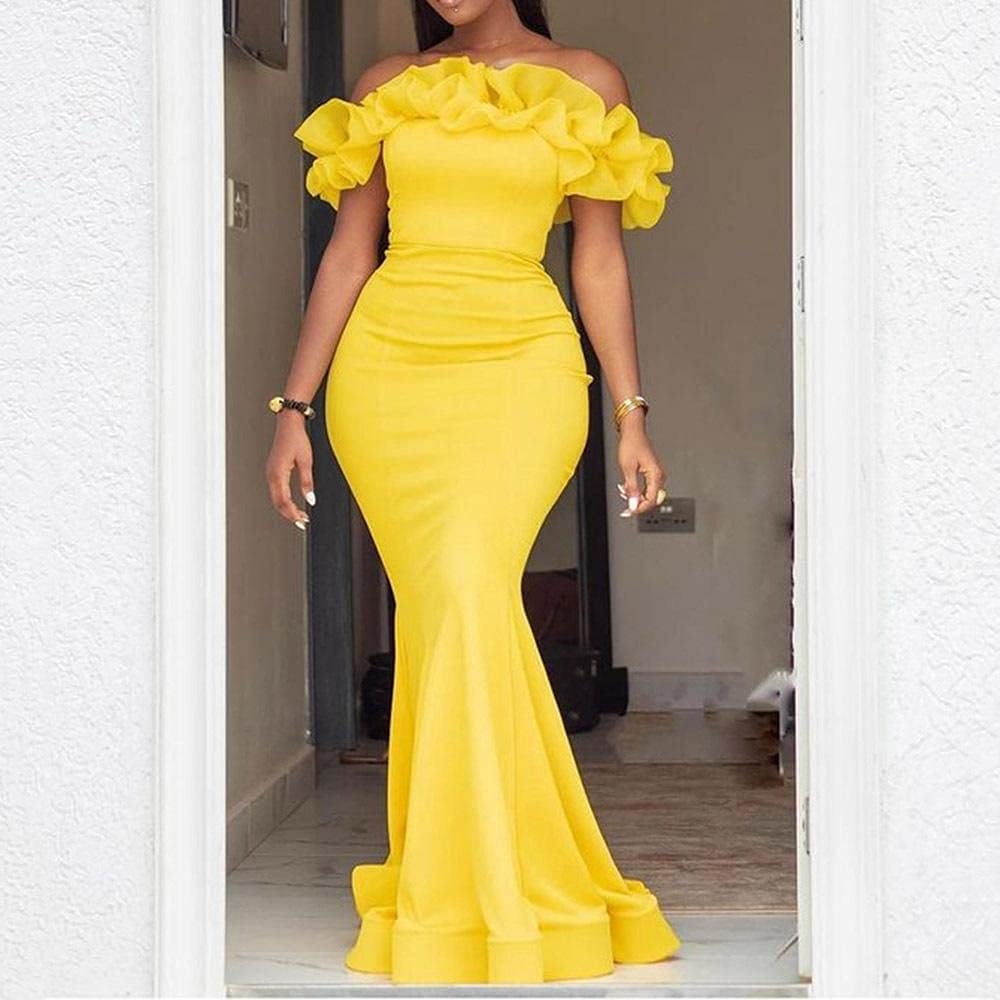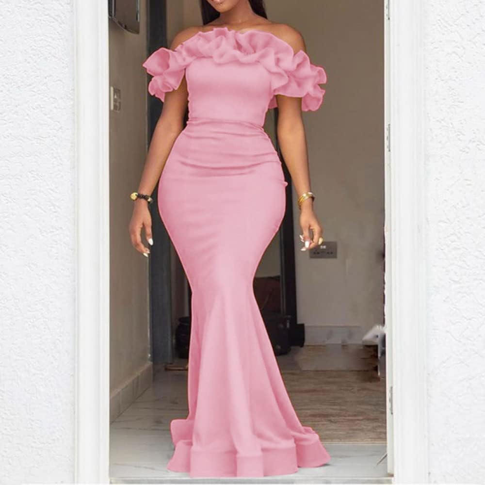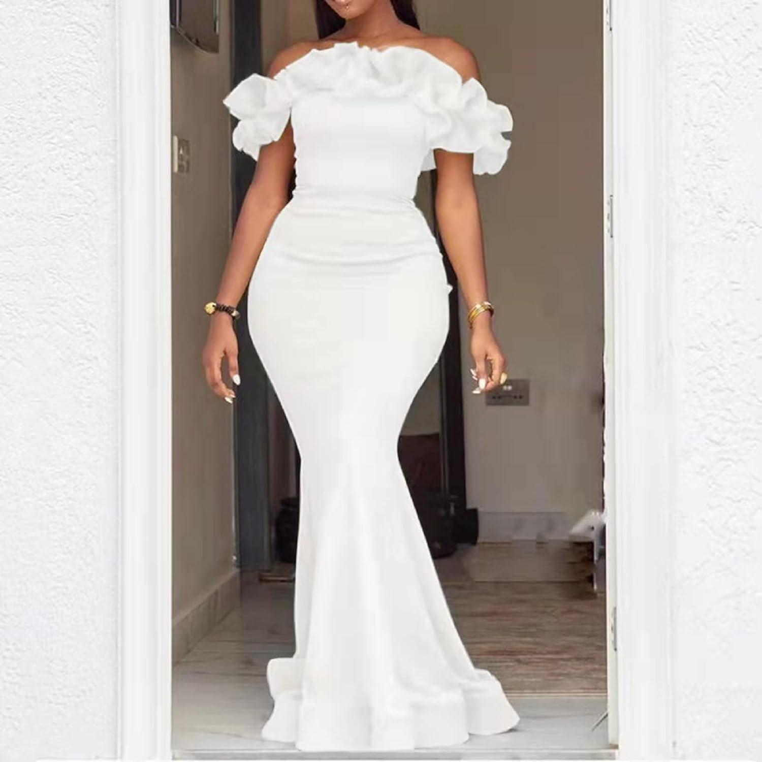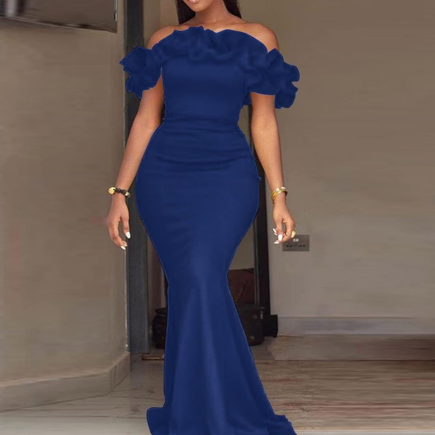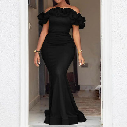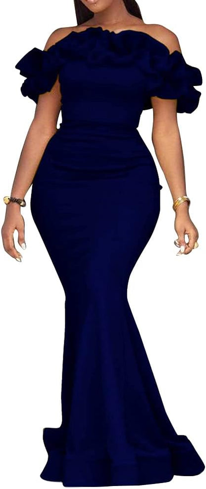Stylish Plus Size Ruffle Off-Shoulder Mermaid Bodycon Maxi Dress – Free Shipping