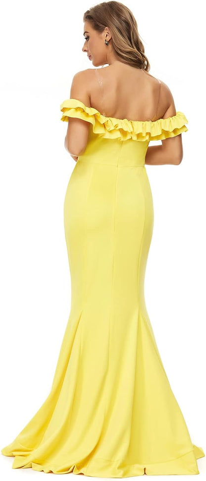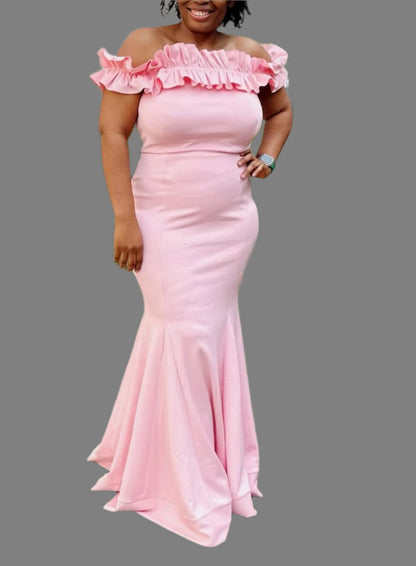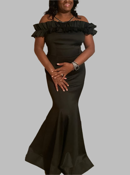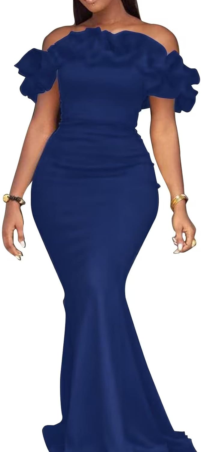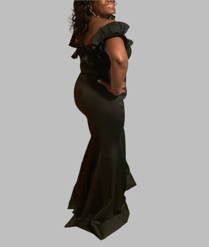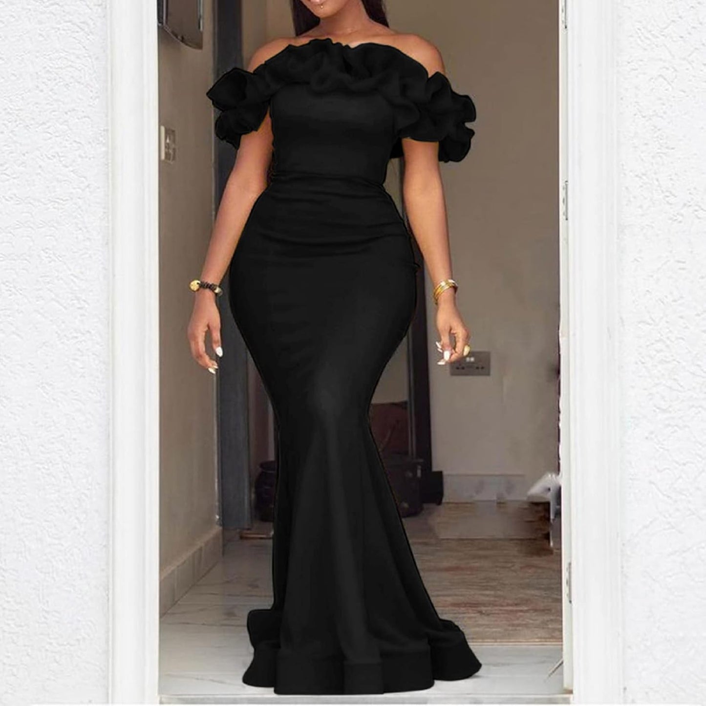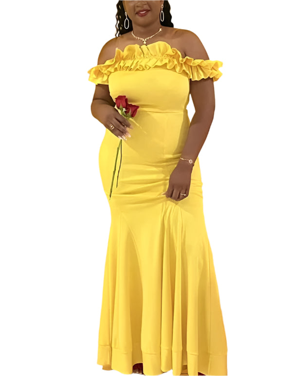 Steal the spotlight in our Stylish Plus Size Ruffle Off-Shoulder Mermaid Bodycon Maxi Dress, designed to flatter your curves with its elegant silhouette and dramatic floor-length finish. Perfect for weddings, evening events, and special occasions, this chic gown features a ruffle off-shoulder neckline for a touch of timeless glamour. Enjoy free shipping on your every purchase.